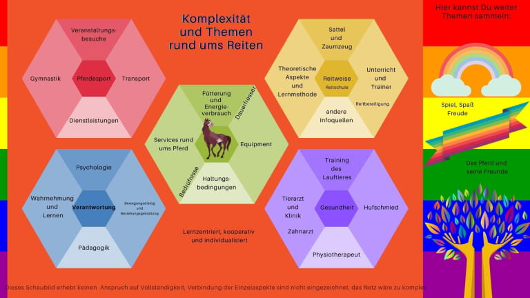 Sicher kennen wir alle bereits ein Schaubild, das die Komplexität aufzeigt, die das Reiten an sich begleitet, aber es kann sicher nichts schaden, wenn wir es zur Aktivierung entsprechender Gedanken dazu hier aufführen und somit unsere Achtsamkeit für die aufgeführte Komplexität steigern.